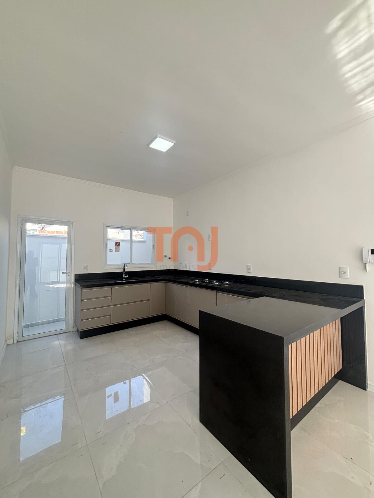 A cozinha planejada e integrada proporciona modernidade e conexão com a área gourmet com churrasqueira, perfeita para receber amigos e familiares.